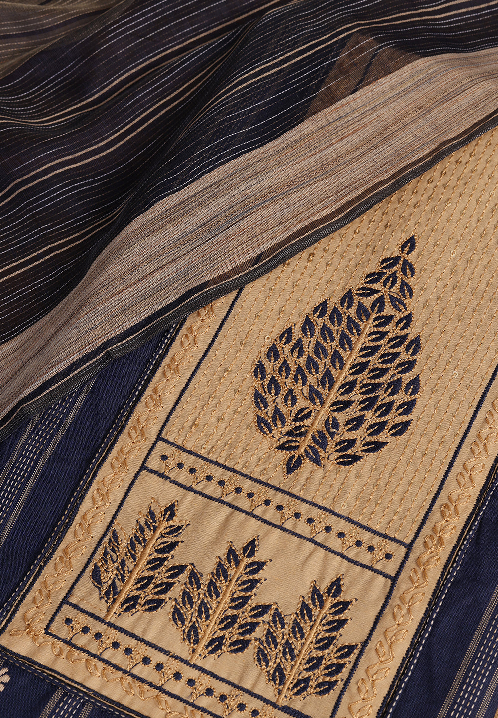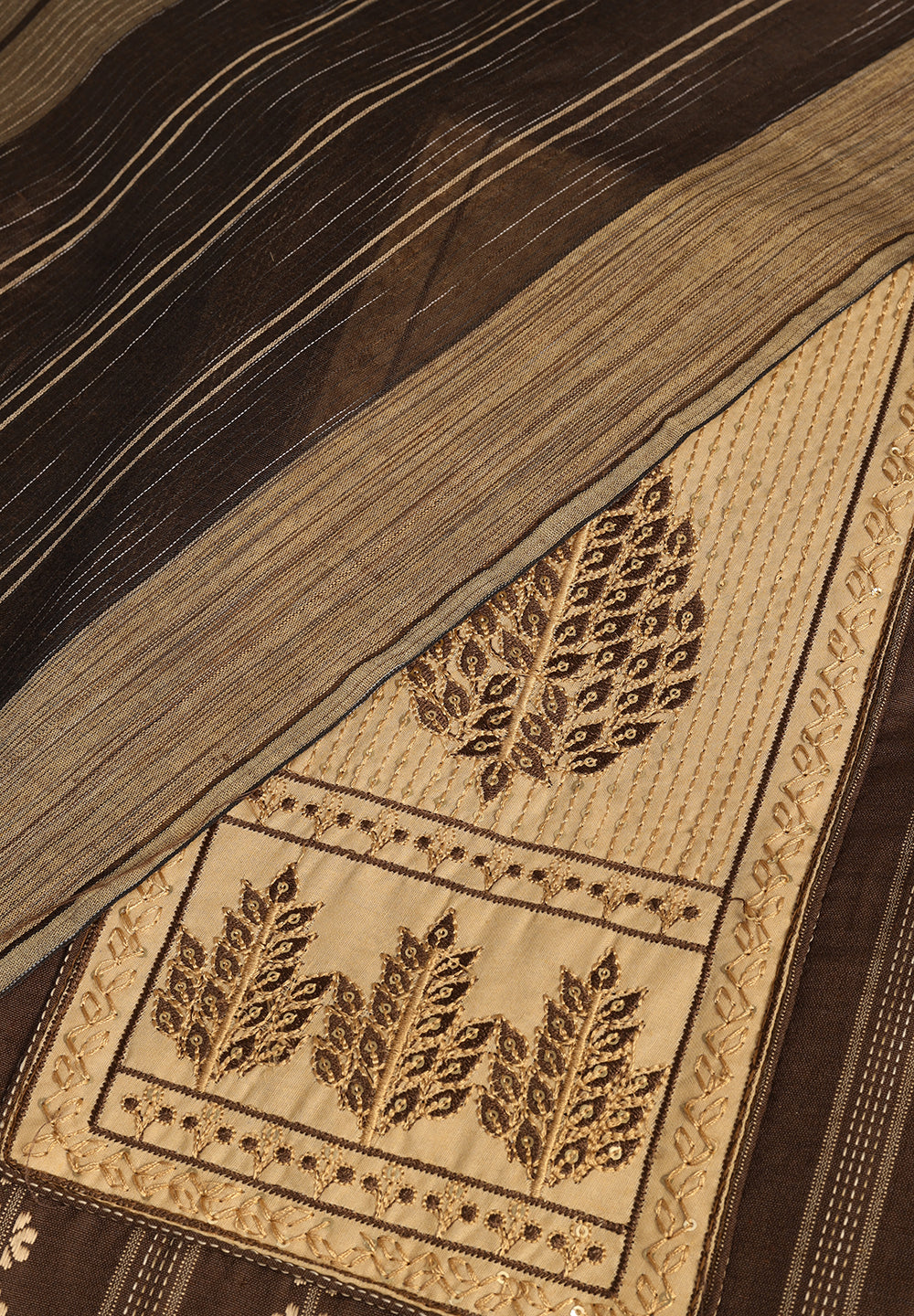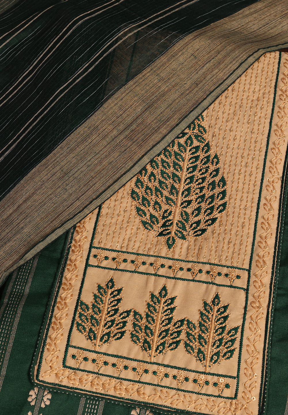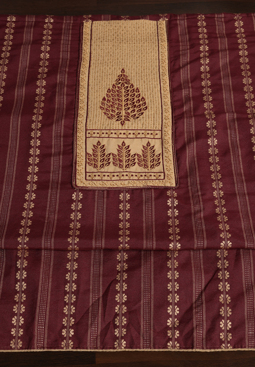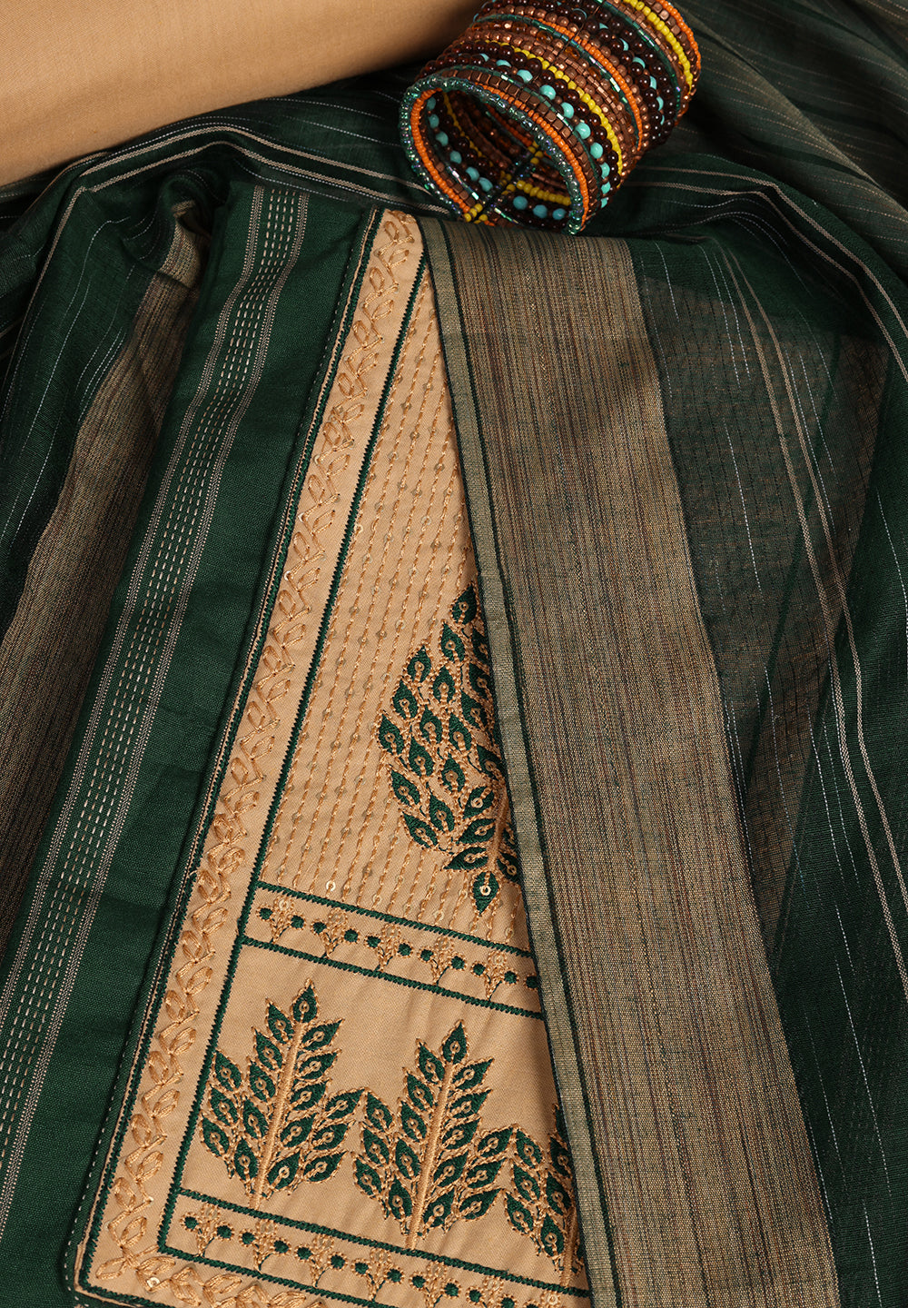 "Unstitched Cotton Suit with Artistic Resham Thread Detailing"