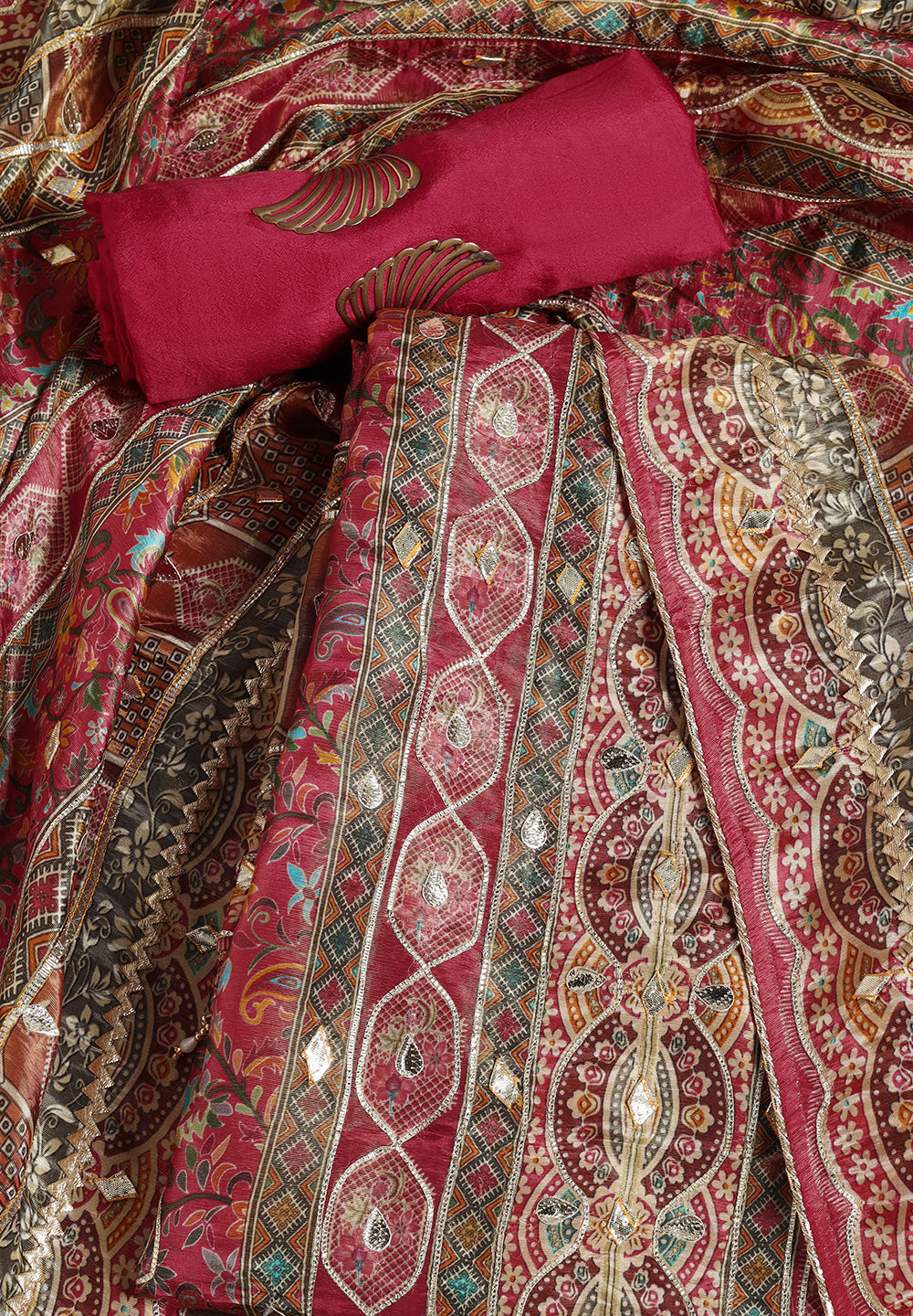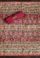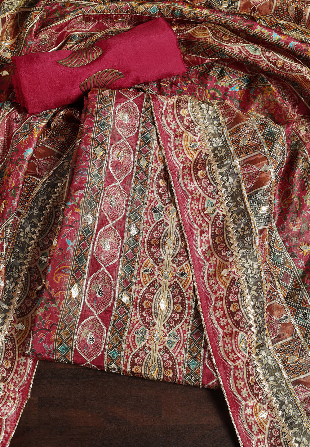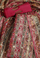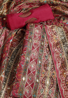 - Accompanied With An Unstitched Silk Bottom And Silk Dupatta